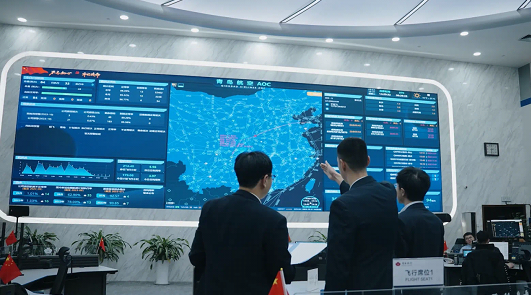 (图为运控职员在AOC大厅研判航班信息)