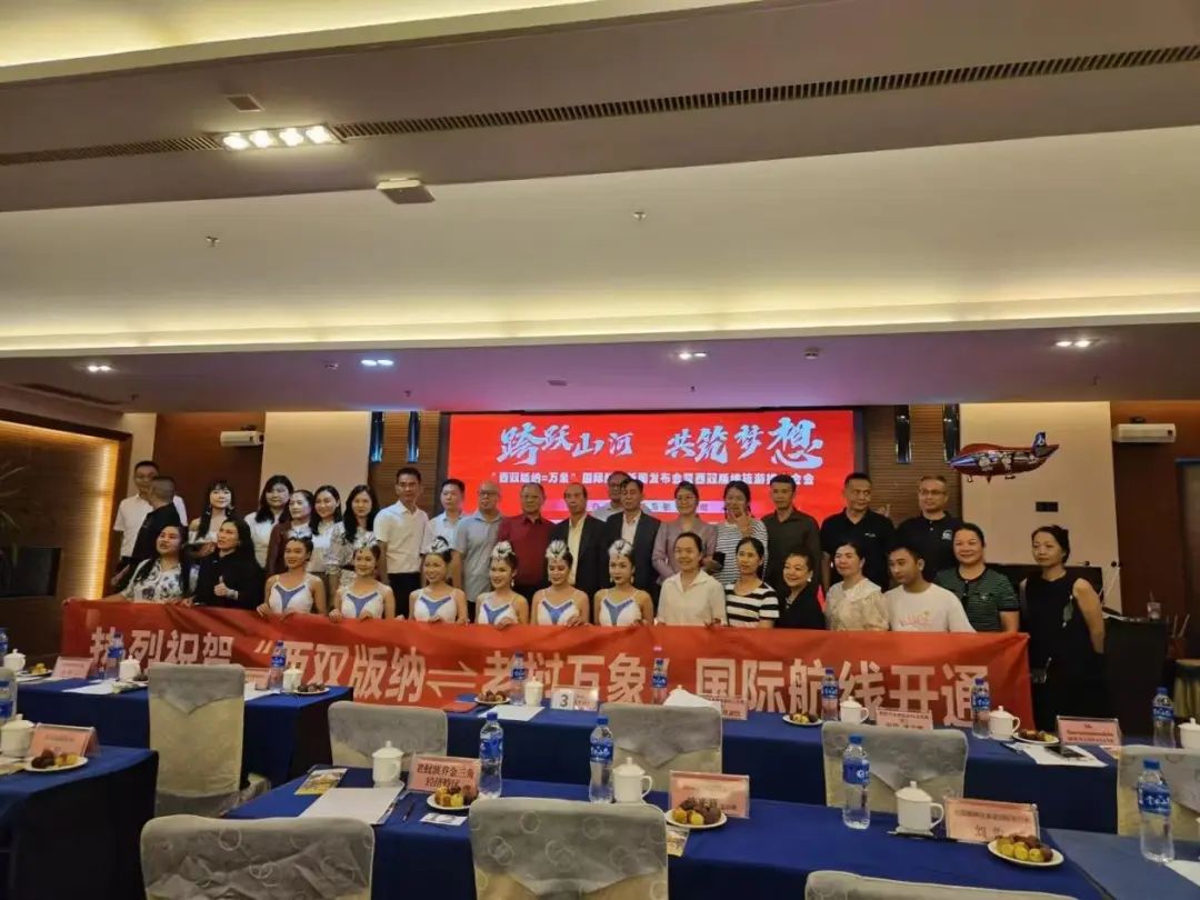 (图为“西双版纳=万象”国际航线新闻宣布会)
