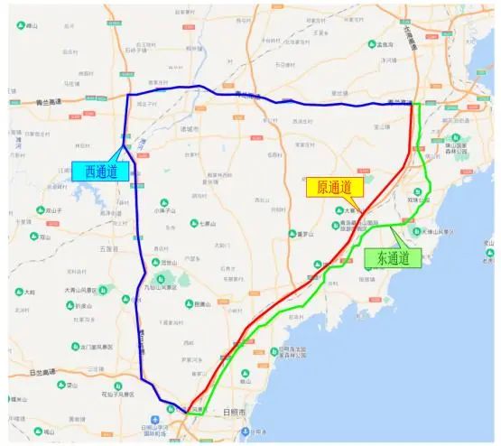 日照-青岛分流路径。。。。。使用日兰高速、潍日高速、青兰高速、G204国道作为日照至青岛的分流路径。。。。。