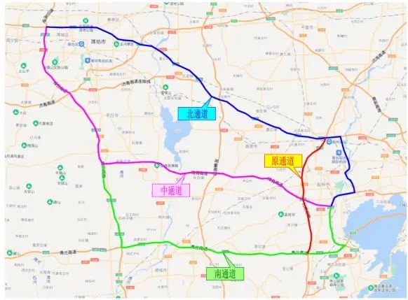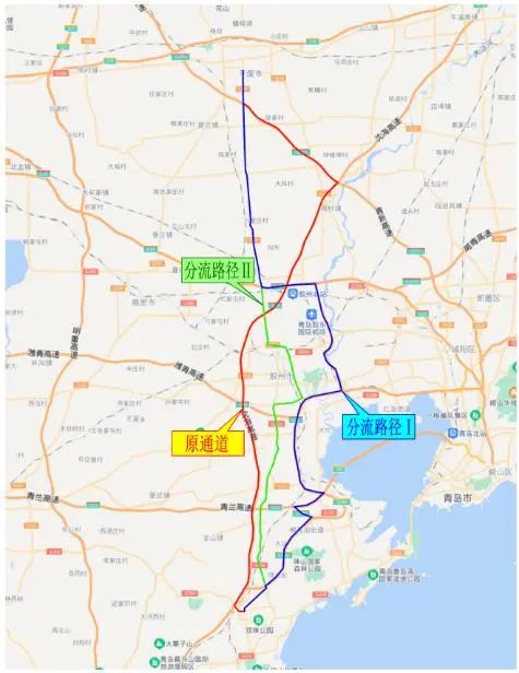 利用S219、青银高速、青岛机场高速、青兰高速、S7602、G204作为平度、胶州、黄岛、即墨、城阳五地间的分流路径。。。。。