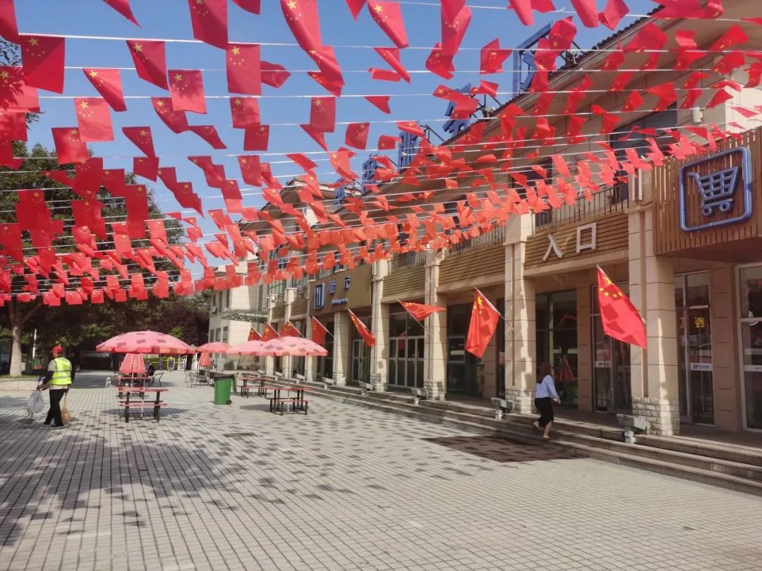平度服务区通过电子显示屏播放国庆宣传口号,,,,,,青新即墨停车区超市内飘扬的 “中国红” 成为感人景物,,,,,,莱洋装务区设立国庆照相打卡点,,,,,,为司乘发松手持小国旗,,,,,,配合庆祝“新中国建设 75 周年”,,,,,,营造浓重节日气氛。。。。。