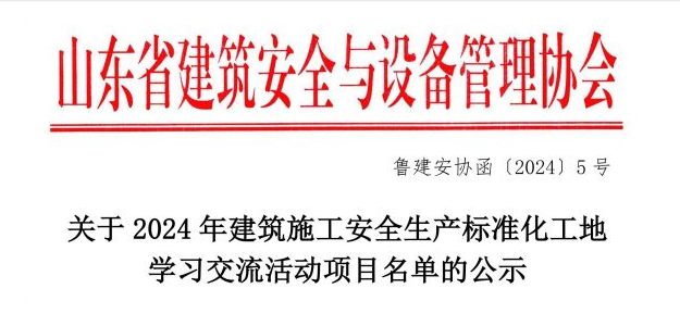 入选山东省2024年修建施工清静生产标准化工地学习交流运动项目。。。。。。