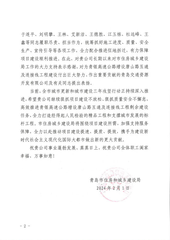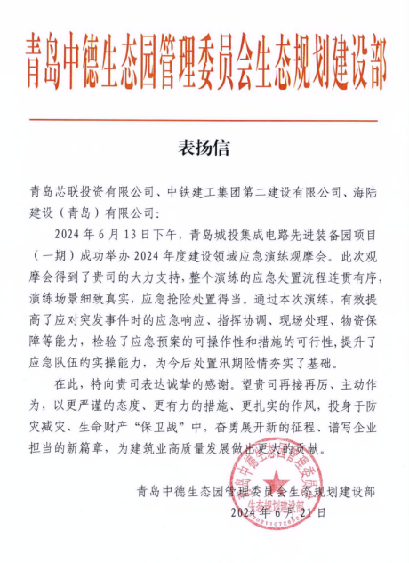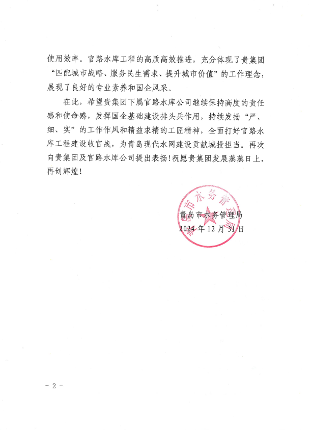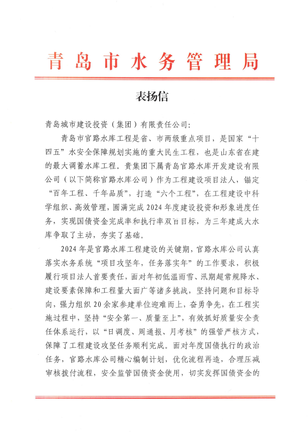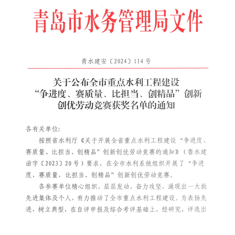 被青岛市水务局评为2024年度青岛市“争进度、赛质量、比继续、创精品”立异创优劳动竞赛文明工地、优胜整体。。。。。。
