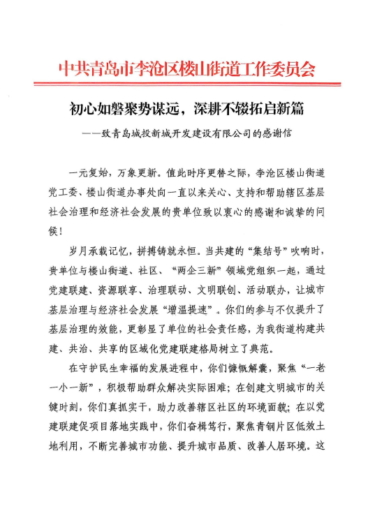 在已往的2024年,,,,,,,,青岛William希尔官网入口集团全体干部员工周全贯彻落实党的二十届二中、三中全会精神,,,,,,,,认真贯彻落实集团党委决议安排,,,,,,,,以勇争上游的雄心壮志,,,,,,,,“打头阵、领先锋”的进取意识,,,,,,,,精彩完成各项事情使命,,,,,,,,涌现出了一批体现优异、效果突出的整体和小我私家,,,,,,,,收获了131项整体声誉、67项小我私家声誉,,,,,,,,以及来自多个单位的26封谢谢信。。。。。。社会各界的认可与谢谢,,,,,,,,就是William希尔官网入口集团继续奋进前行的不竭动力!以下为2024年度部分声誉和谢谢信集锦: