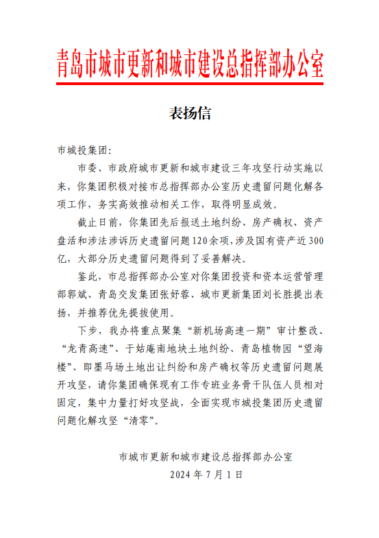 被中国都会建设投融资论坛组委会、中国都会工业协同立异团结体评为“2024年国企平台公司转型升级标杆企业”。。。。。。