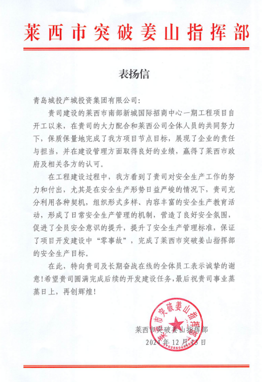莱西国际招商中心项目被山东省住房和城乡建设厅评为2024年度全省住房城乡建设系统重点工程立异创优优胜奖;;;;;