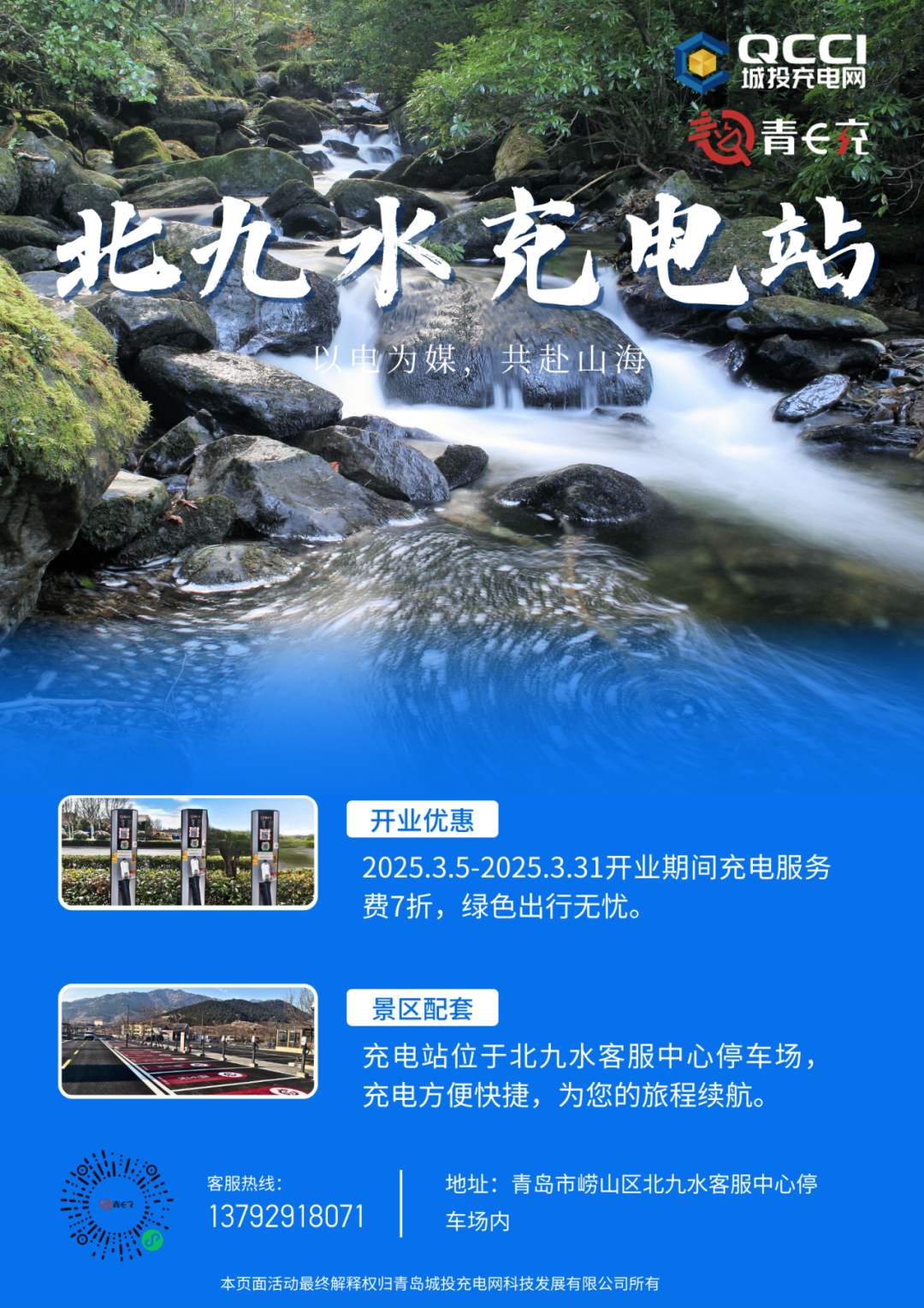 克日,,,,,青岛William希尔官网入口充电网公司崂山北九水景区充电站正式开业,,,,,作为北九水景区规模最大的充电站,,,,,将有用知足新能源车主们自驾游的续航需求,,,,,2025年3月5日至3月31日时代,,,,,充电服务费享受7折优惠。。。。。