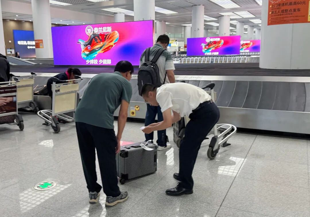£¨Í¼ÎªÇൺº½åÐÒ£Ãæ·þÎñÖ°Ô±ÐÖúÓοÍÌáÈ¡ÐÐÀ