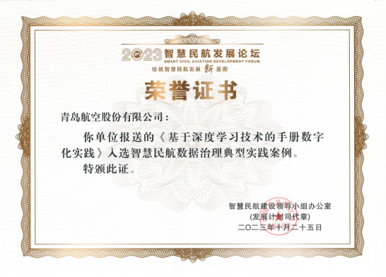 青岛航空荣获“智慧民航典范案例”