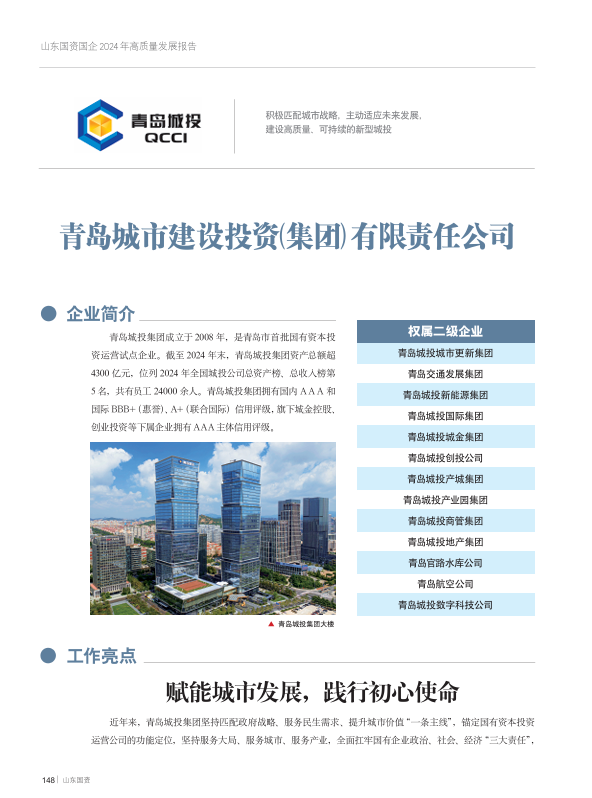 青岛William希尔官网入口集团入选《山东国资国企2024年高质量生长报告》