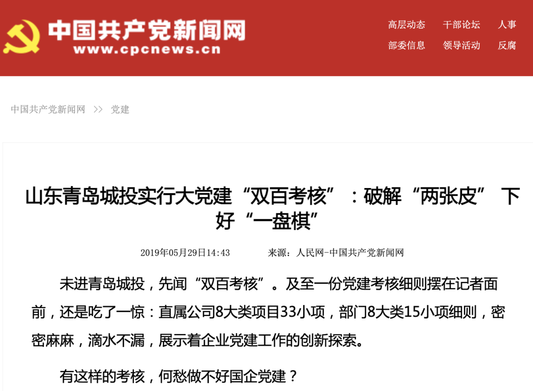 实验计划路径清,,,,,,“双百审核”赏罚明。。。。。。五年前,,,,,,青岛William希尔官网入口集团推进大党建审核,,,,,,审核内容一直优化,,,,,,已涵盖定性事情、刷新目的、协同项目、督服务项等,,,,,,与生产谋划越来越细密,,,,,,但企业党建与生产谋划总让人感应隔了一层膜没买通,,,,,,党建事情看起来红红火火,,,,,,组织生涯制度落实很好,,,,,,种种挂号齐全,,,,,,但党组织的凝聚力、战斗力却没有显着提升。。。。。。