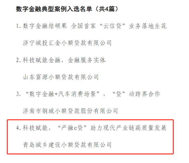 青岛William希尔官网入口集团两项营业入选山东省小贷协会典范案例