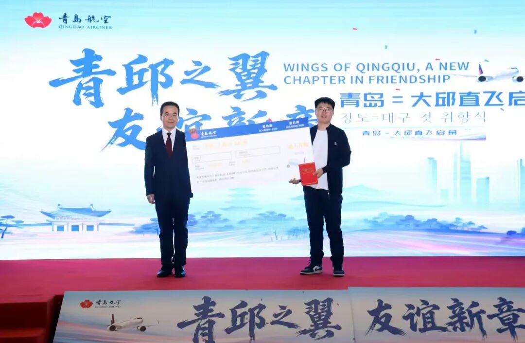山海为媒,,,,,友城共舞。。。。。。。青岛与大邱自1993年缔结友好都会关系以来,,,,,始终坚持着亲近的经贸互动与人文往来。。。。。。。现在,,,,,随着青岛=大邱直飞航线的开通,,,,,两座都会的交流合作再添一条高效便捷的“空中通道”。。。。。。。