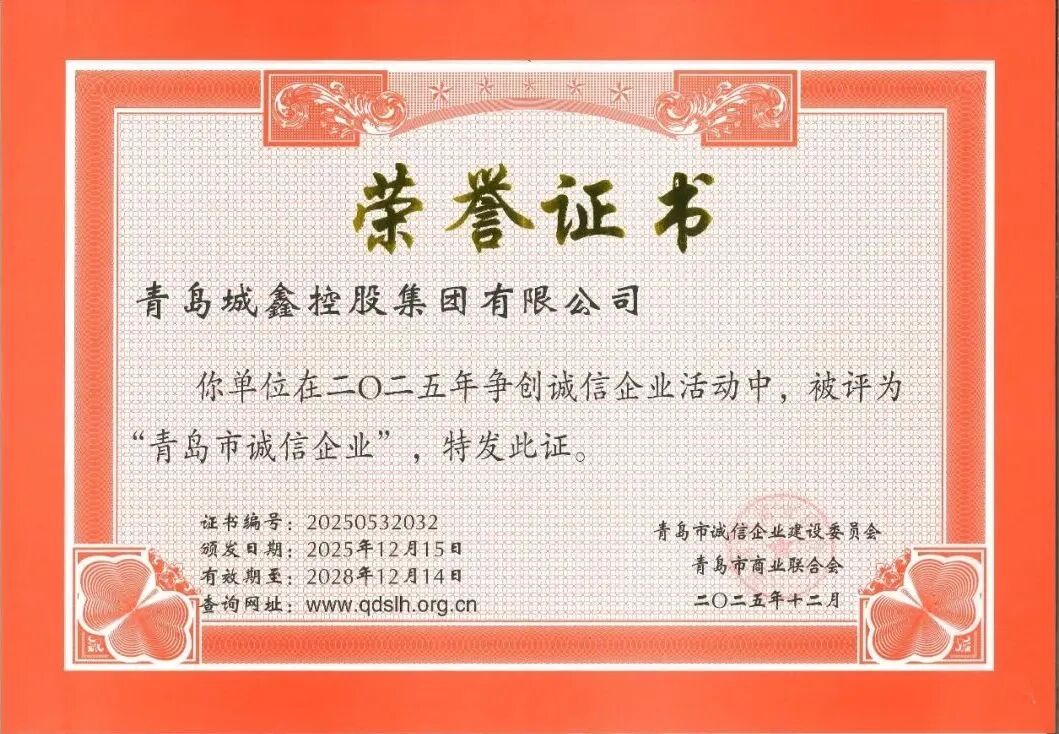 青岛城鑫控股集团荣获“青岛市诚信企业”