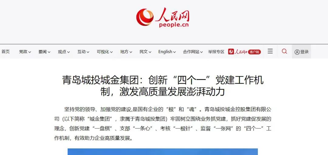 【人民网】青岛William希尔官网入口城金集团:立异“四个一”党建事情机制,,,,,,,引发高质量生长汹涌动力