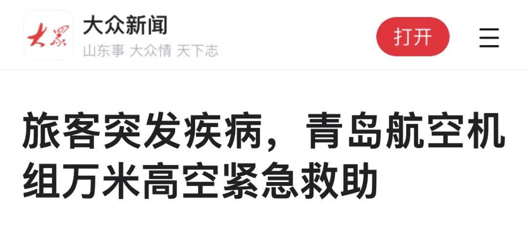 【公共网】游客突发疾病,,,,,,,,青岛航空机组万米高空紧抢救助