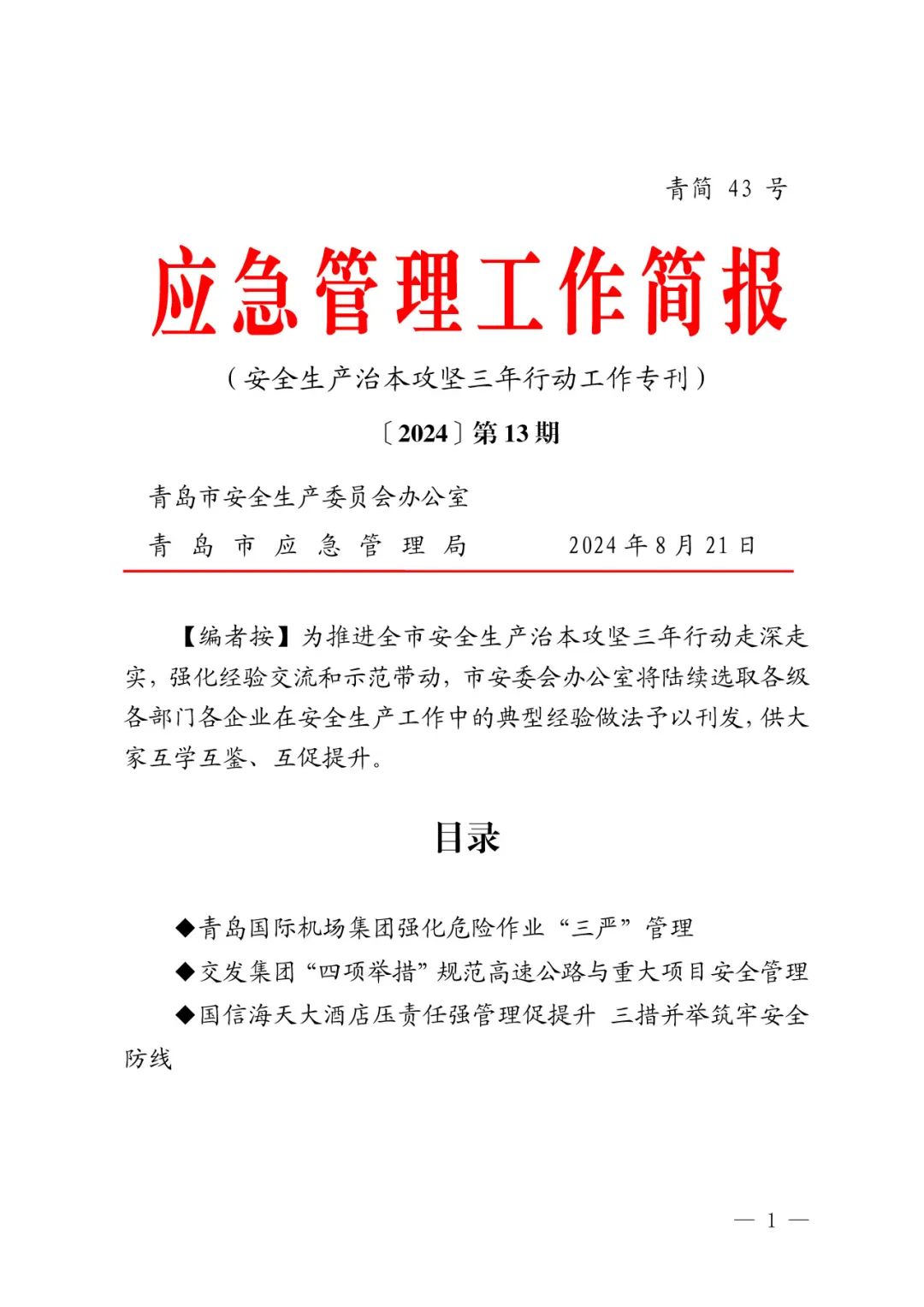 市安委办《应急管理事情简报》刊文推广青岛William希尔官网入口集团清静生产事情优异履历