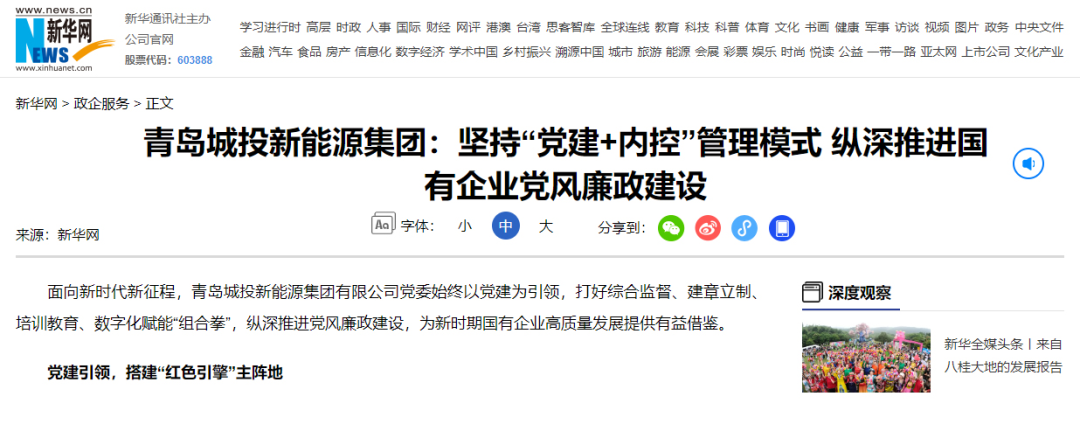 【新华网】青岛William希尔官网入口新能源集团:坚持“党建+内控”管理模式 纵深推进国有企业党风廉政建设