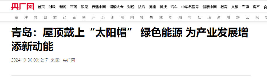 【央广网】青岛:屋顶戴上“太阳帽” 绿色能源 为工业生长增添新动能
